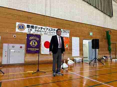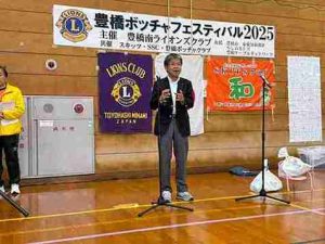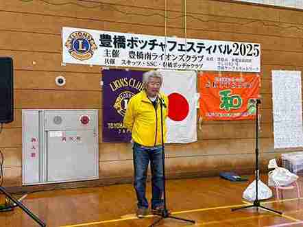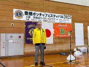 今日は冷え込む一日となりましたが、皆さんが楽しみにしていたボッチャフェスティバルの開催を大変嬉しく思います。これまで仲間と練習したり、時には意見が合わずぶつかることもあったと思いますが、その積み重ねこそ今日の大会につながっています。思いきり力を発揮し、そして何より笑顔で楽しんでください。私たち豊橋南ライオンズクラブは、皆さんの活動を応援できることを誇りに思っています。これからもボッチャを通じて仲間が広がり、誰もが楽しく過ごせる街づくりに少しでも貢献できれば幸いです。本日はどうぞ最後まで元気にボッチャを楽しんでください。よろしくお願いいたします。